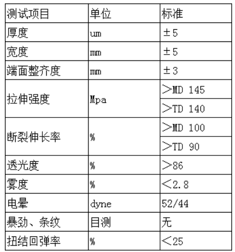 常規厚度:19μ,做印刷,糖果、牛肉粒包裝;23μ,做巧克力包裝。寬度可定制;